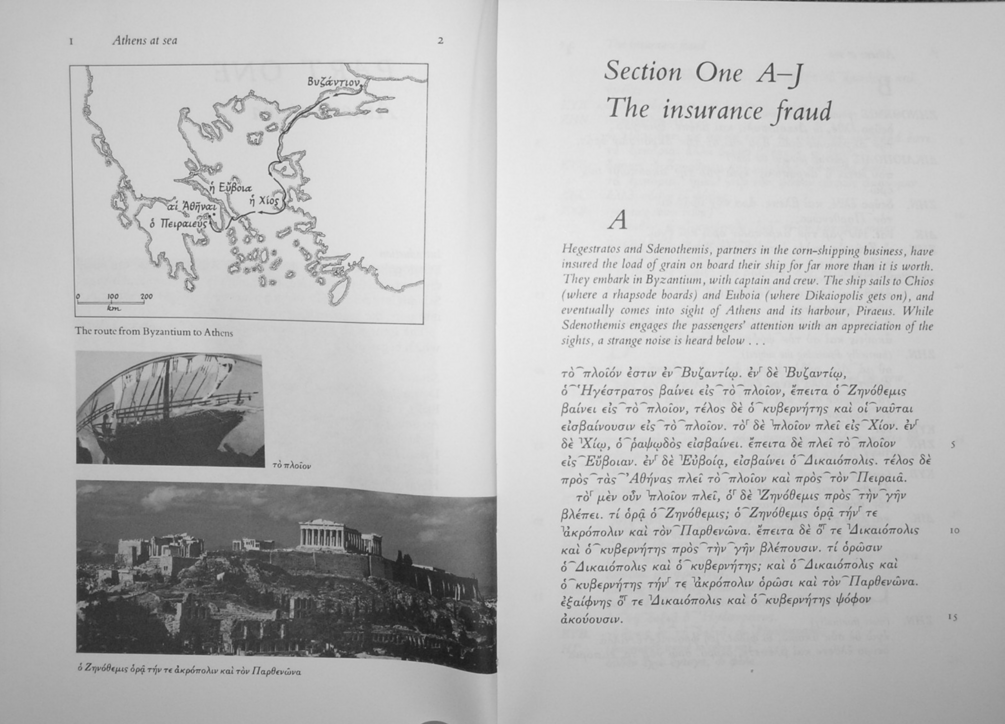 Published by the Joint Association of Classical Teachers (JACT) in 1978, Reading Greek combines charming adaptations of Aristophanes with extraordinarily clear and concise explanations of Greek grammar.